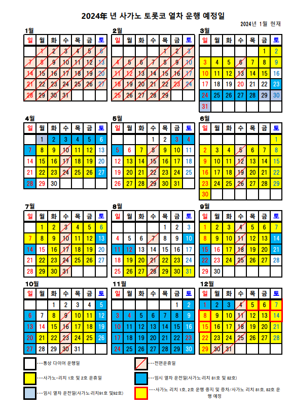 토롯코 관광열차는 한 개의 열차선이 있기때문에 열차를 돌릴 수 없어 열차 모양을 그대로 유지한테 앞뒤로 움직인답니다.