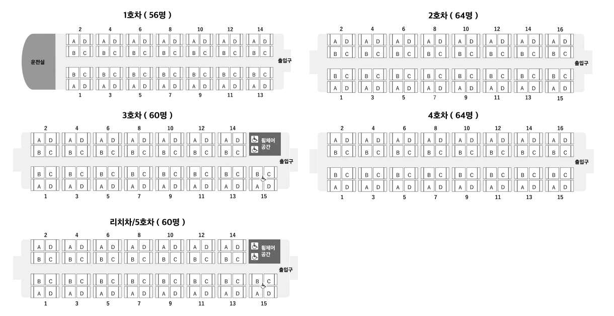 5호차 '더 리치호'에는 유리창이 없는 좌석입나다.