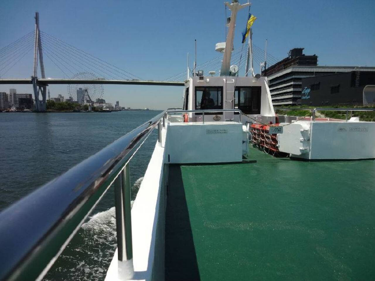 오사카의 가이유칸 아쿠아리움과 유니버셜 스튜디오 재팬을 이어주는 셔틀 페리 입니다. 편도 약 10분 정도 소요되며, 1층은 에어컨 구역, 2층은 오픈탑으로 구성되어 있어 이동하시는 동안 오사카 베이 지역을 구경해 보실 수 있습니다.