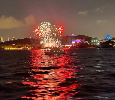 범선 위에서 해 질 무렵 바다를 보며 식사하는 경험이 정말 낭만적이었어요.