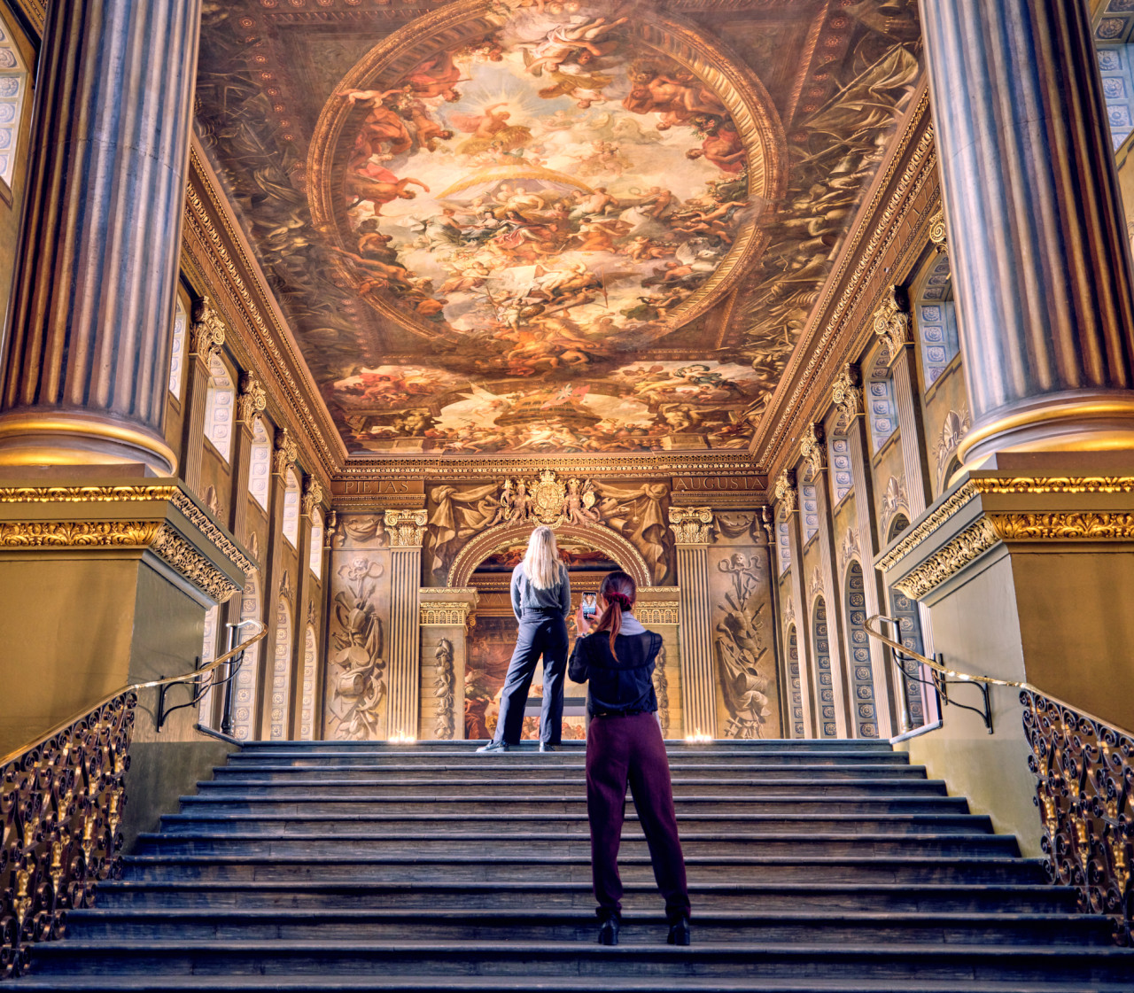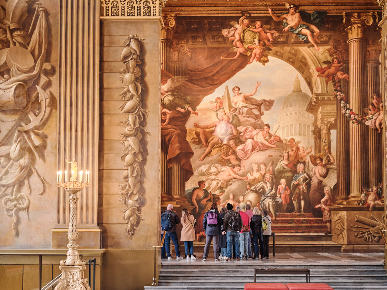 종종 '영국의 시스티나 성당'이라고 불리는, 구 왕립 해군 대학의 페인티드 홀을 방문해 보세요. 원래는 해군 병원의 식당으로 크리스토퍼 렌 경이 설계했으며, 이후 제임스 손힐 경이 19년 동안 그림을 그렸습니다. 홀의 천장에 그려진 200개의 신화적, 역사적, 현대적 인물들은, 정치적 변혁에서, 문화, 역사적 성취에 이르기까지, 다양한 이야기들을 들려줍니다.