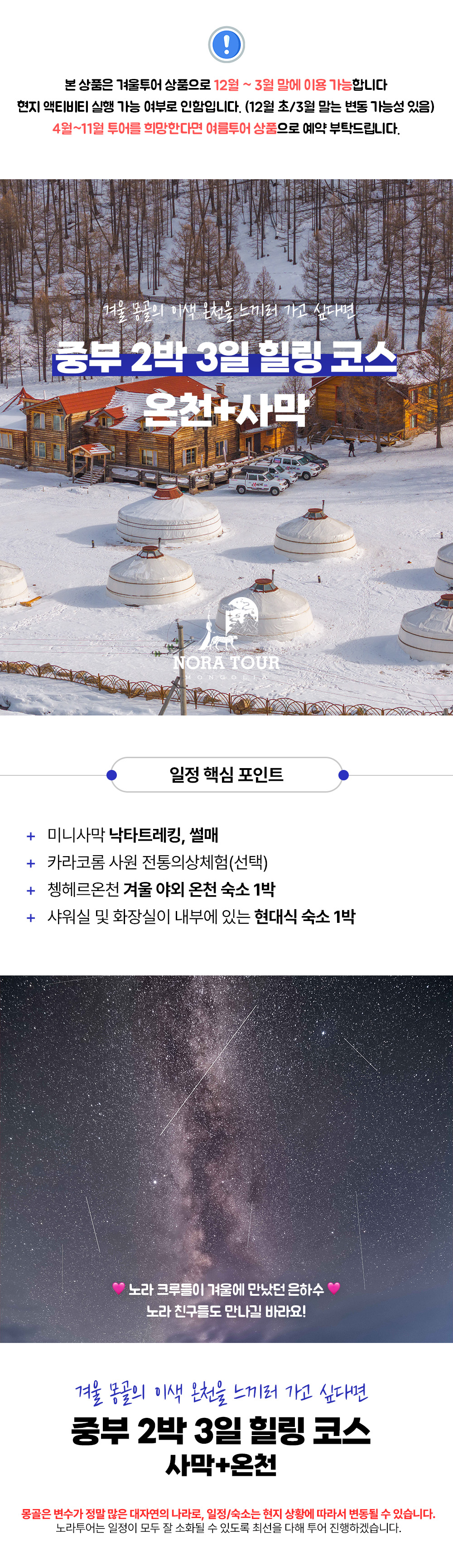 [겨울 몽골]겨울사막, 겨울 온천/2박3일 겨울중부 힐링코스