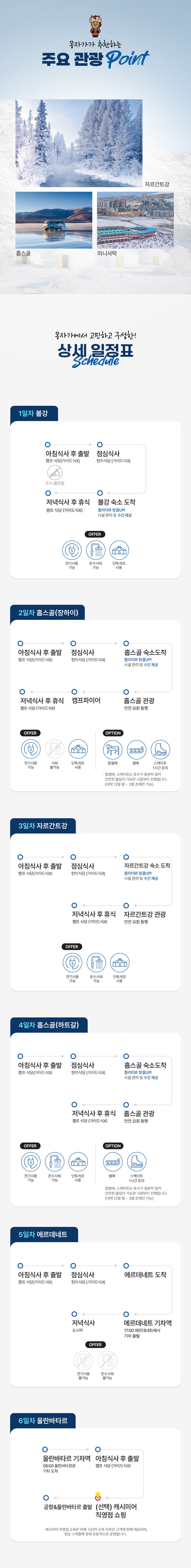 모래썰매,낙타,사막은하수,홉스골호수,무릉,허르헉,승마,캠프파이어,보트,볼강