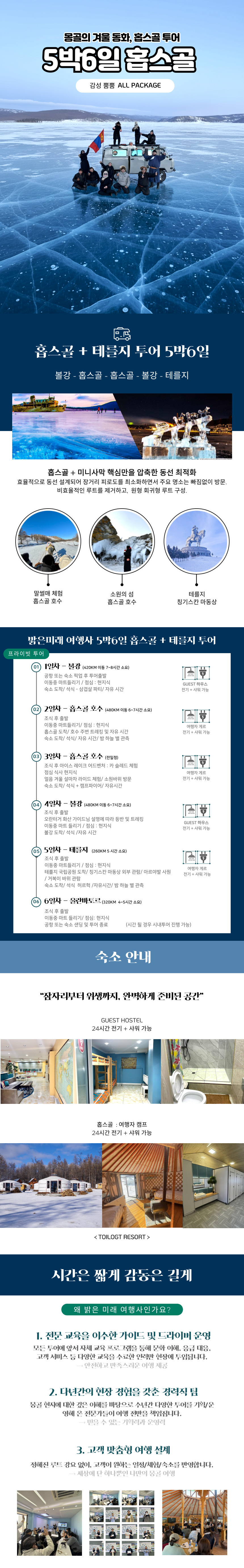 • 몽골 여행 전 국내(대한민국)에서 “여행자 보험” 가입을 권장합니다. (※ 본 상품은 여행자 보험 불포함)