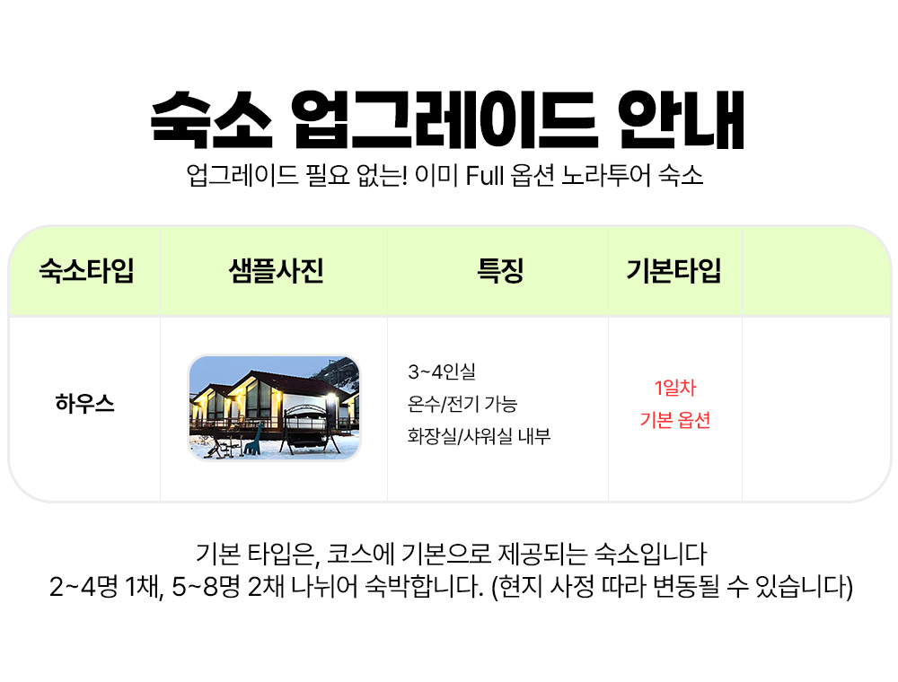 • 석식 이후 가이드의 퇴근 및 개인 시간이 보장되며, 캠프 내 과도한 음주·소음으로 다른 여행객에게 불편을 주지 않도록 매너를 지켜주세요.