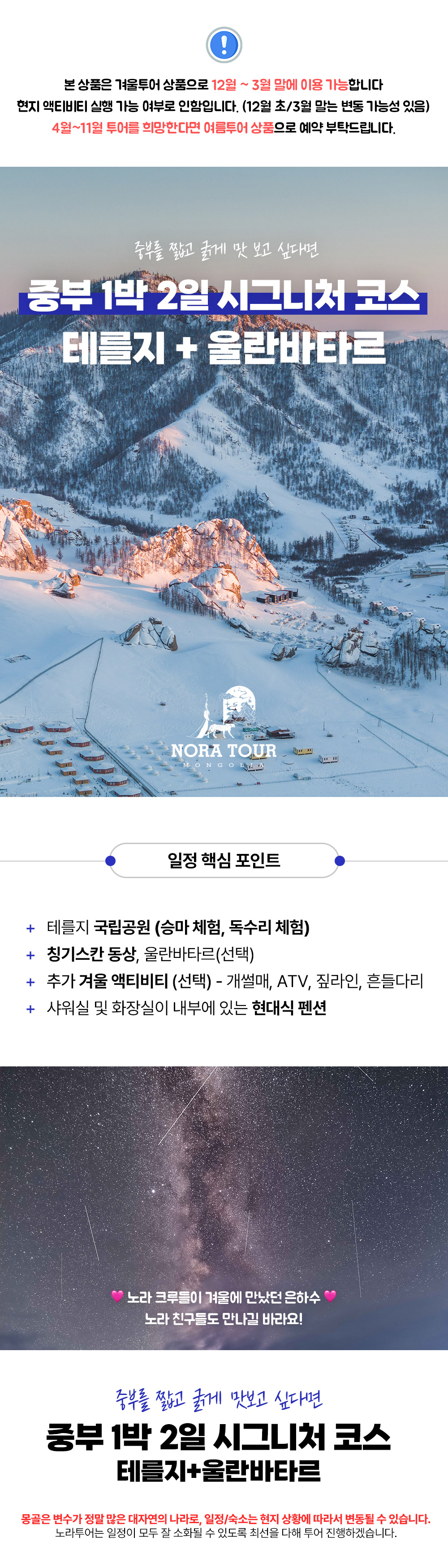 [겨울 몽골]테를지 집중! 겨울 액티비티 도장깨기/겨울중부 1박2일 시그니처