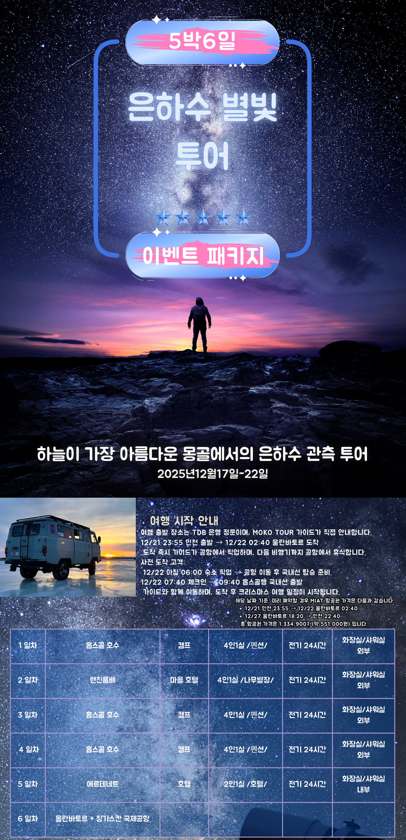 [몽골] 홉스골 + 메리 크리스마스 이벤트 투어 5박 6일