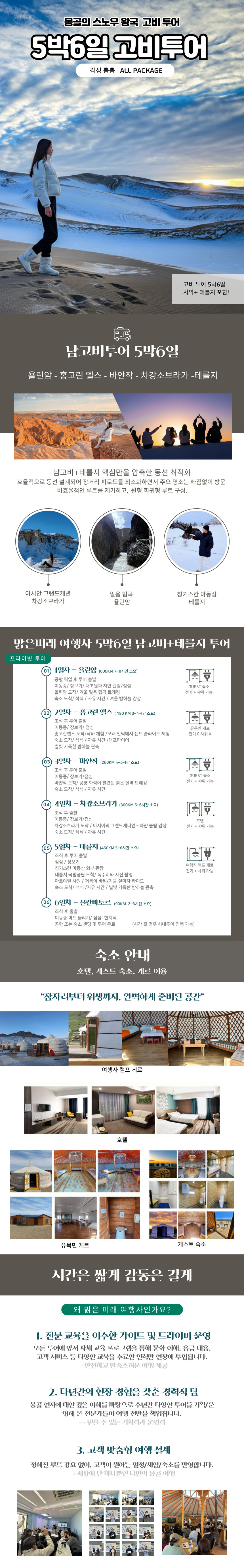 • 몽골 여행 전 국내(대한민국)에서 “여행자 보험” 가입을 권장합니다. (※ 본 상품은 여행자 보험 불포함)