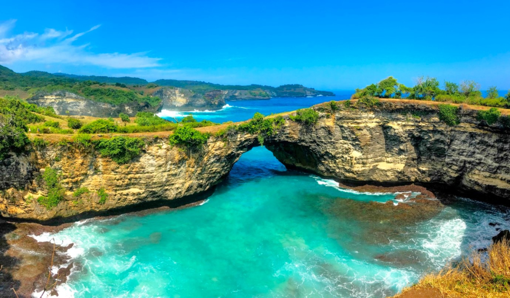 브로큰 비치는 누사 페니다의 대표 명소로, 자연이 빚어낸 예술 작품 같은 해안 절경입니다.