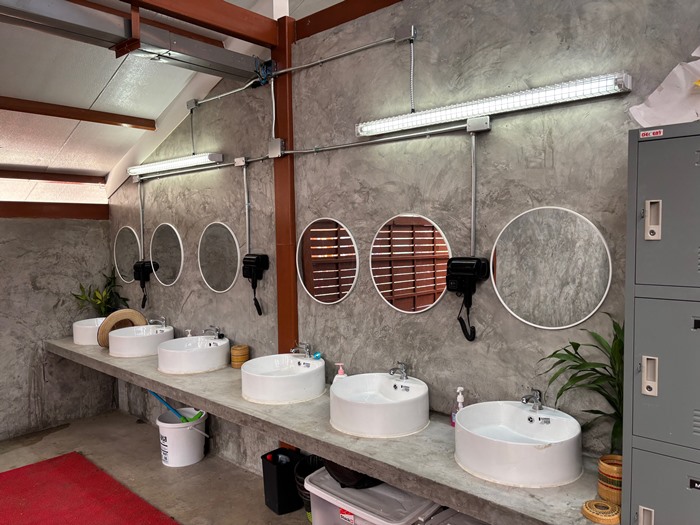 캠프에는 투어 전후로 식사를 즐길 수 있는 식당, 개인 소지품을 안전하게 보관할 수 있는 락커(보증금 100바트, 반환 시 환불), 탈의실, 그리고 코끼리와 목욕 후 이용할 수 있는 냉/온수 샤워 시설이 완비되어 있습니다. 투어에 필요한 셔츠와 모자는 무료로 대여해 드리며, 장화는 소정의 대여료(50바트)로 이용 가능합니다.