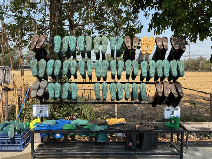 외부에 있는 이 장화가 필요한 손님은 대여료 50바트 지불 후 이용 가능합니다.