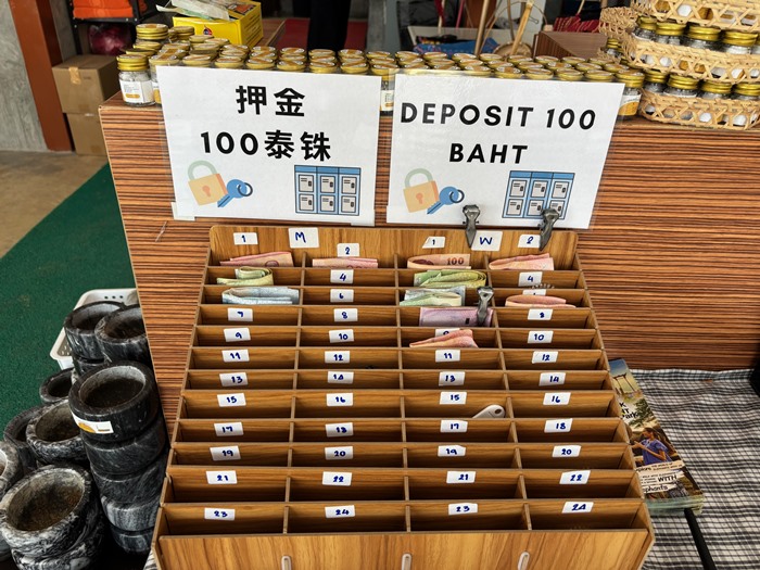 락커는 100바트 보증금을 넣어두고 키로 바꾸어 이용 가능하며, 키 반납시 100바트 보증금을 찾아가시면 됩니다.