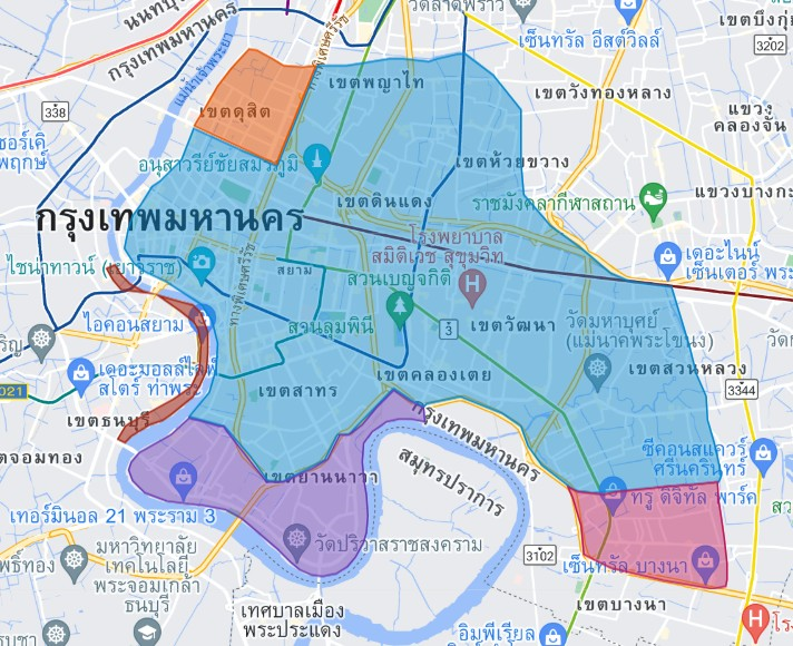 * 유료 픽업지역2 -Purple, Orange, Pink Zone (추가 비용 약 10,000원 /1인)