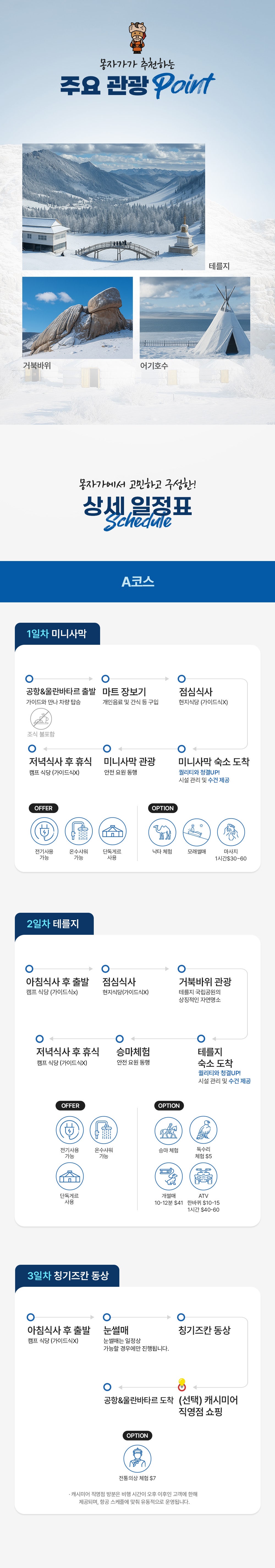 미니사막,모래썰매,낙타,아르항가이,화산,호수,수영,승마,캠프파이어,보트