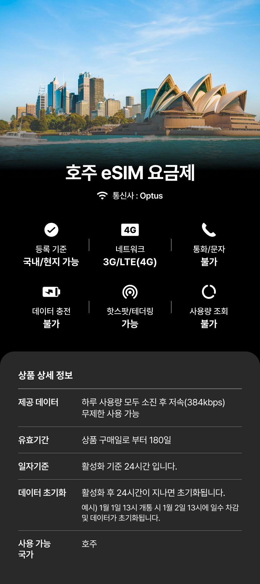 [호주/뉴질랜드] eSIM 데이터 무제한 (2GB)