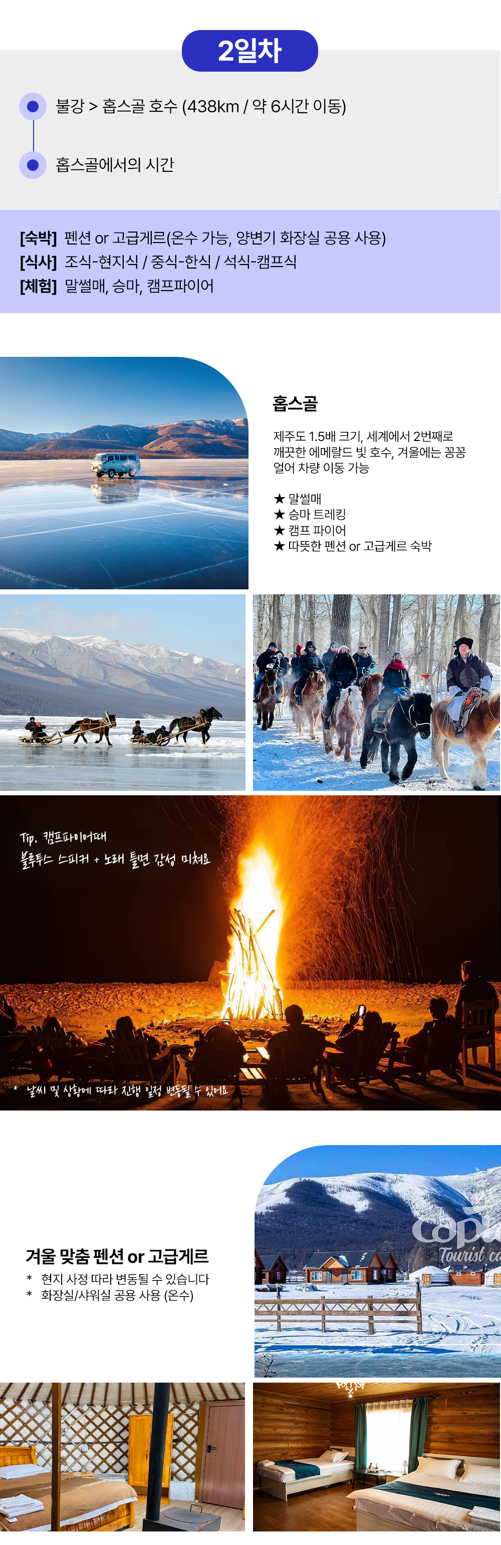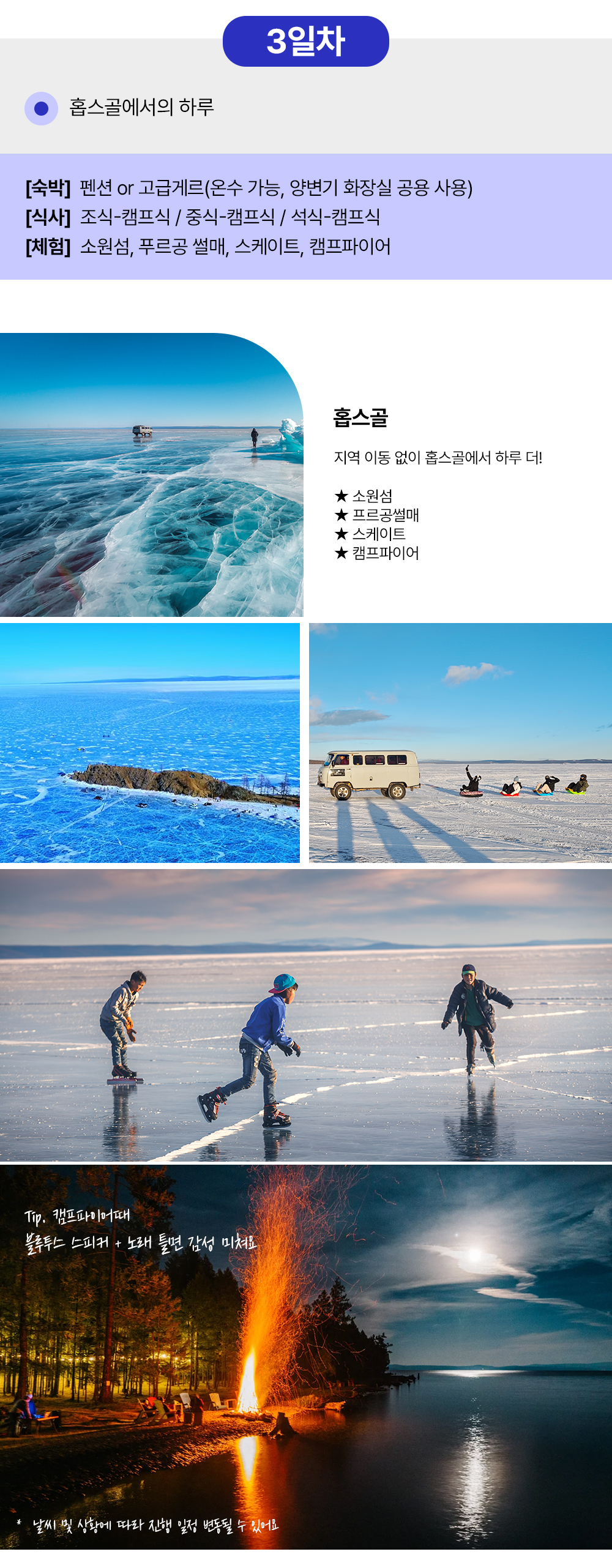 • [3day] 홉스골 호수, 소원섬 방문, 스케이트, 푸르공 썰매, 캠프파이어 (고급 펜션 or 고급게르)