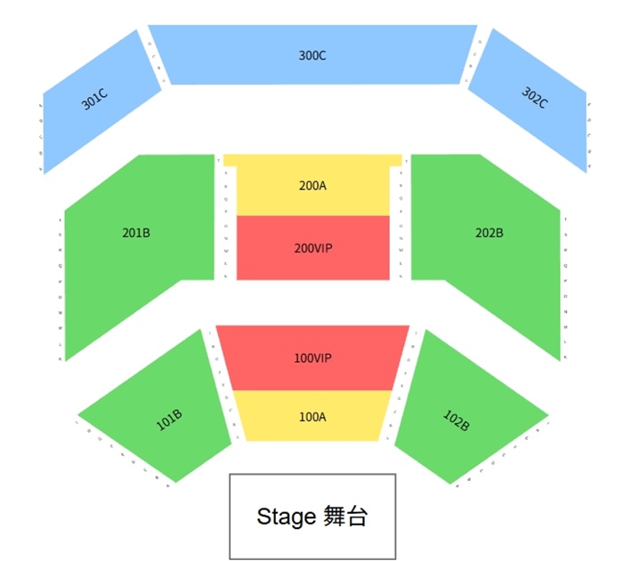 - 100VIP: 무대 바로 앞 중앙 구역 (100A 바로 뒤)