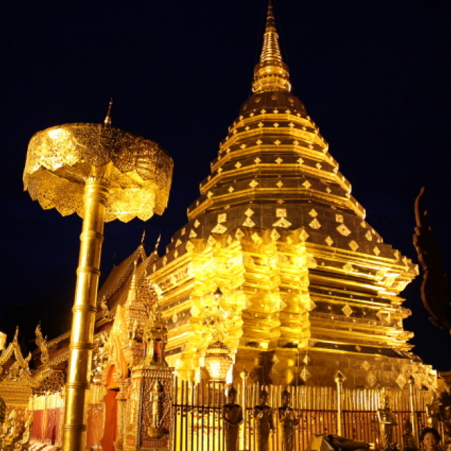 치앙마이 시내에서 서쪽으로 약 25KM 가량 떨어져 있는 산속에 있는 치앙마이 대표 사원입니다.​ 태국어로 해석하자면 왓은 사원, 도이는 산, 수텝은 산의 이름으로 수텝산에 있는 프라탓 사원이라는 뜻입니다. 왓 프라탓 사원은 란나 왕조 시절, 산 정상까지 부처의 사리를 운반하던 흰 코끼리가 탑 주변을 세바퀴 돌고 죽었다는 전설이 내려오는 곳이기도 합니다. 300여개의 계단은 도이수텝의 트레이드 마크로 용의 계단 앞에서 멋진 사진을 남길 수 있는 매력적인 곳이랍니다.