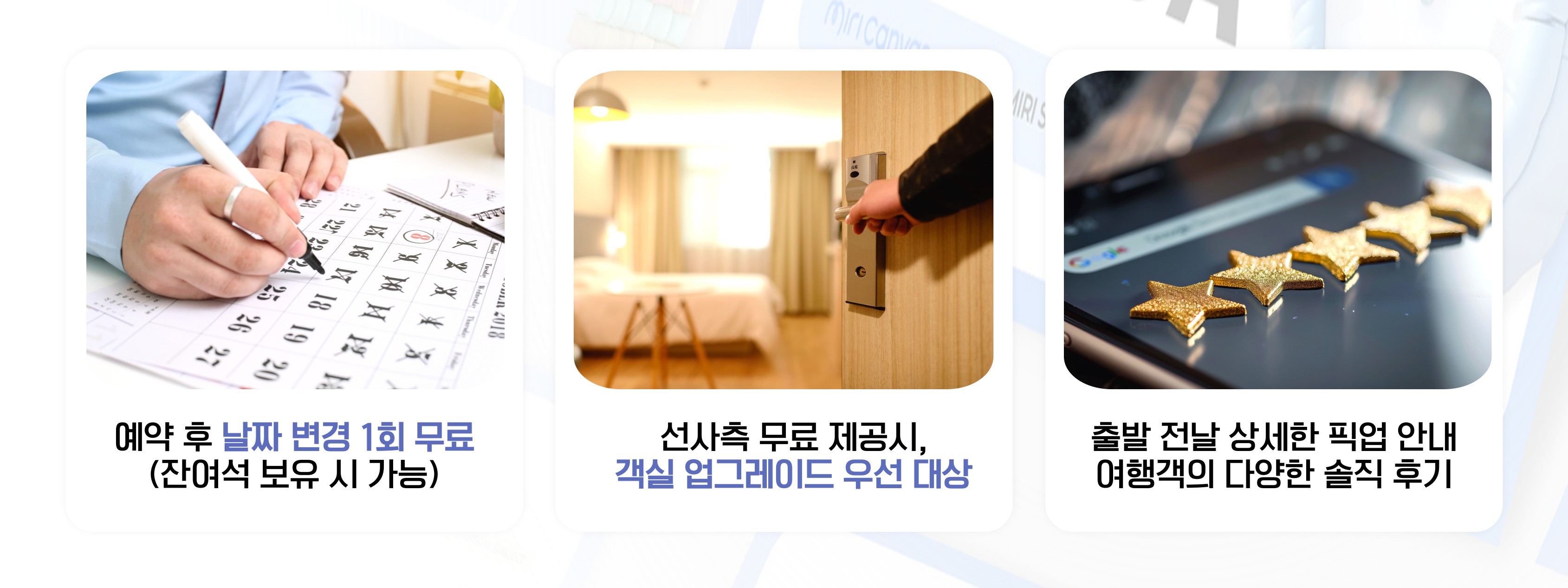 부럽트래블은 통신판매중개자이며 통신판매의 당사자가 아닙니다. 부득이한 사정에 의해 확정된 여행일정이 변경되는 경우 여행자의 사전 동의를 받습니다.