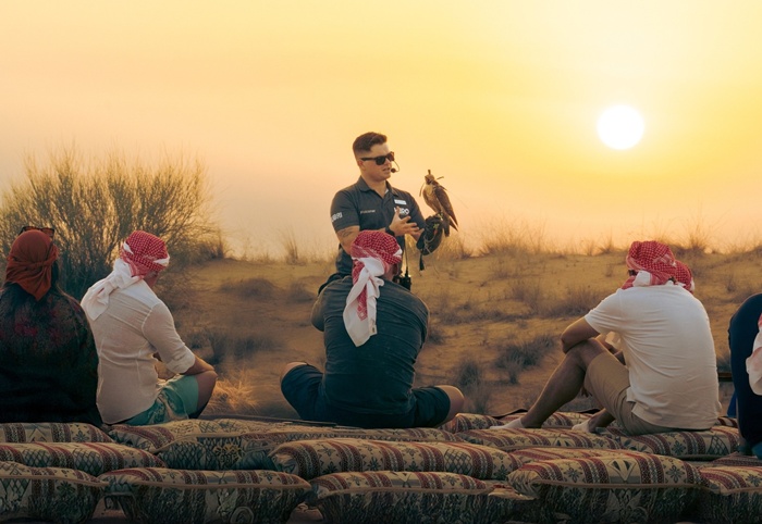 사막 일몰 포인트에서 일몰 감상 및 팔콘 쇼