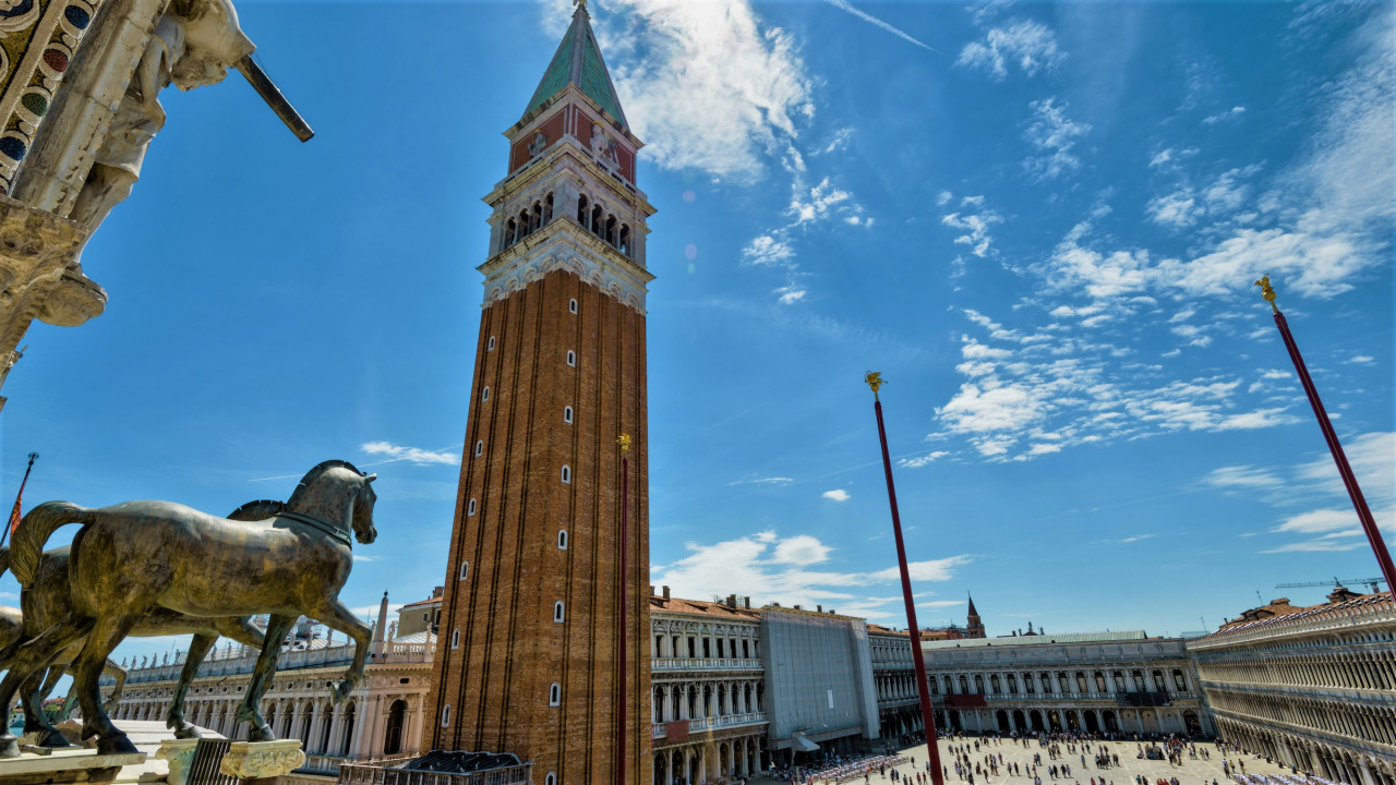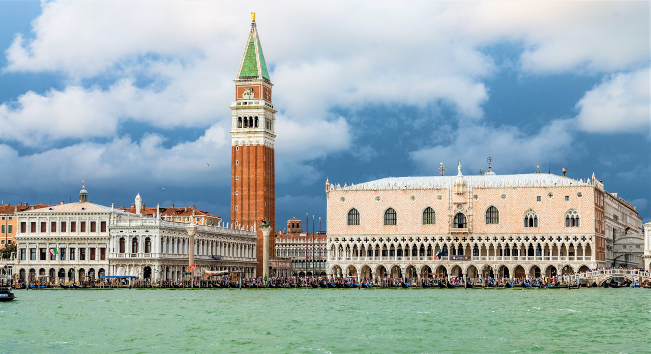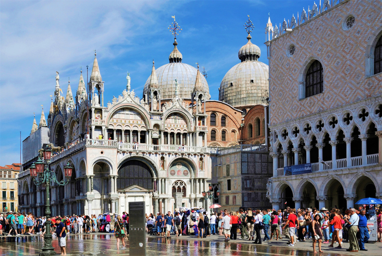 산 마르코 광장의 동쪽 끝에 위치한 산 마르코 대성당은 베니스 대교구의 대성당 역할을 하며 도시의 수호성인인 복음사들이 유물을 간직하고 있습니다. 대성당은 1340년에 지어진 베네치아 고딕 양식의 건축물인 총독의 궁전과 연결되어 있습니다. 이곳은 한때 베니스 공작의 거주지로 사용되었고 나중에는 감옥으로 사용되다가 1923년에 박물관으로 개조되었습니다. 2시간 동안 진행되는 산마르코 대성당 & 두칼레 궁전 우선입장 티켓 가이드 투어로 더 흥미로운 역사적인 사실들을 알아가보세요.