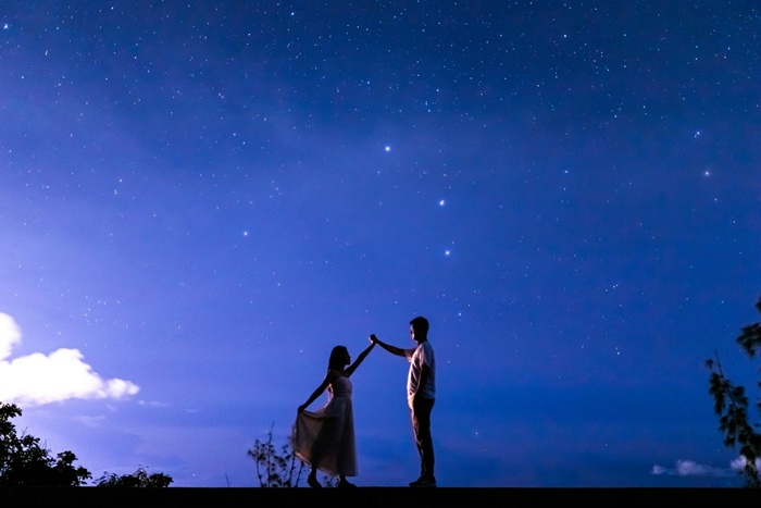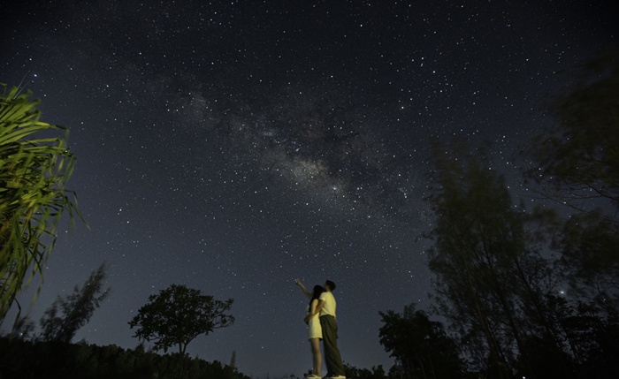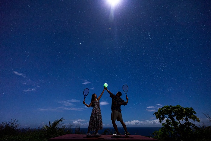 괌의 맑은 밤하늘 아래 별빛과 함께 감성적인 야경 감상.