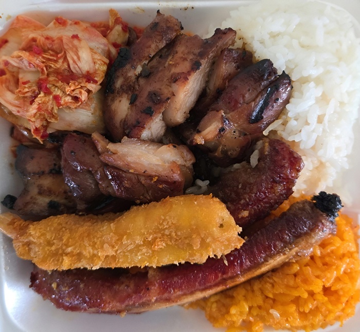 메뉴구성 : BBQ 치킨, BBQ돼지갈비, 새우, 밥, 김치