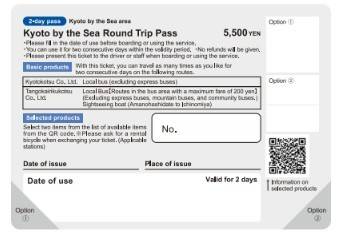 “바다의 교토” 주유패스 2일권은 교토 북부 바다 지역을 효율적으로 여행할 수 있는 패스입니다. 기본으로 교토교통·단고 카이리쿠교통 노선버스를 2일간 무제한 이용할 수 있어 역-명소 간 이동이 매끄럽고, 선택 상품 5종 중 2가지를 골라 체험할 수 있어 일정 구성의 자유도가 높습니다. 철도·항만 역사와 문화(후쿠치야마 철도관·마이즈루 아카렌가·인양 기념관), 자연·뷰 포인트(아마노하시다테·이네만 유람선), 힐링 코스(아야베 온천), 지역 공예 체험(요사노 실크) 등 다양한 테마를 조합해 나만의 2일 코스를 설계해 보세요.