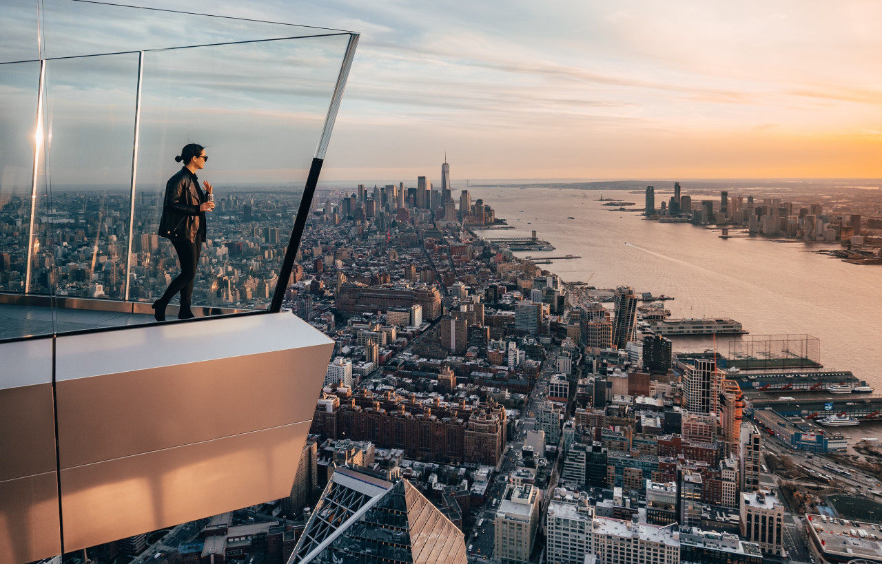 서반구에서 가장 높은 야외 전망대인 엣지는, 독특한 디자인을 자랑합니다. 공중에 매달려 있어 하늘에 떠 있는 듯한 느낌을 주며, 다른 곳에서는 볼 수 없는 360도의 전망을 제공합니다. 100층 높이의 유리 바닥에서 발 아래 펼쳐진 도시를 내려다보며 스릴을 즐기고, 경사진 유리벽에 기대어 도시를 바라보며 하늘에서 샴페인을 즐겨 보는 등, 이전에 경험한 것과는 다른 방식으로 뉴욕을 즐겨 보세요.
