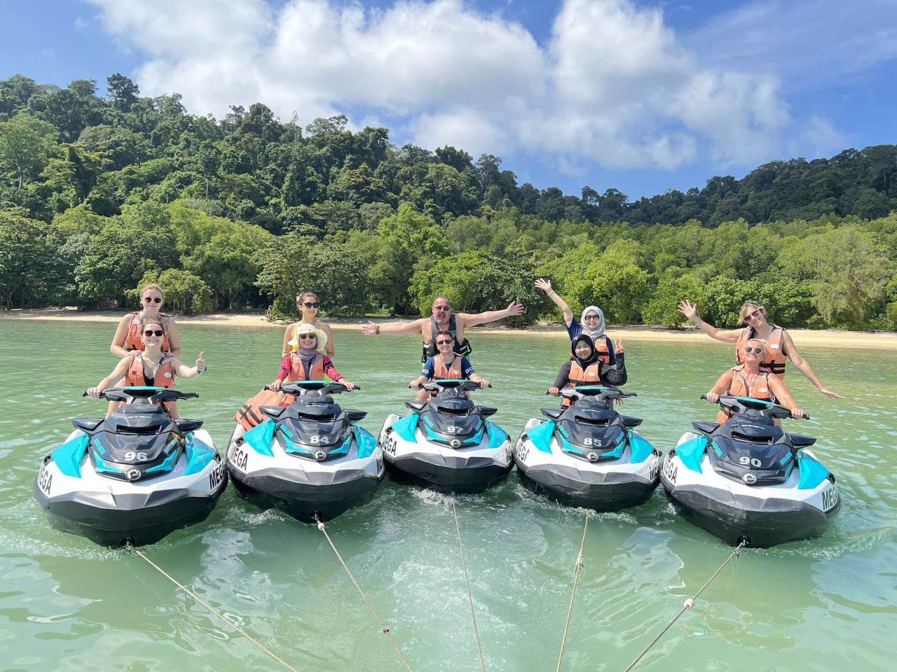 - 오키드 리아 (Orkid Ria) 레스토랑 뒤편 세낭 비치에 위치한 메가 워터 스포츠 (Mega Water Sports)의 미팅 장소에서 만남을 갖습니다.