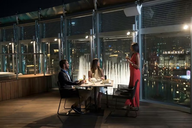 마법 같은 분위기를 지닌 흥미진진한 장소인 Rooftop에서는 두바이 분수(Dubai Fountain)와 부르즈 칼리파(Burj Khalifa)의 멋진 전망을 감상할 수 있습니다.